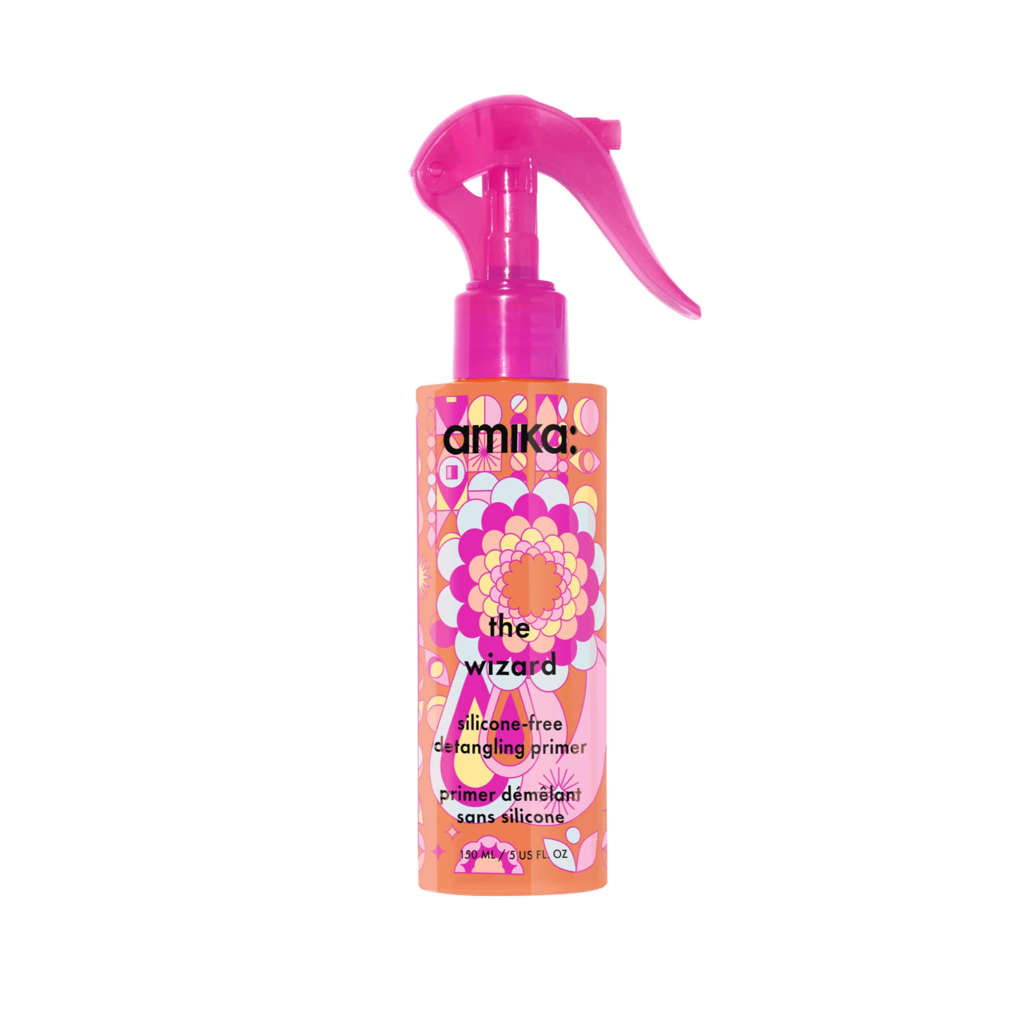 AMIKA The Wizard Silicone-Free Primer je lehký bezsilikonový primer na vlasy, který usnadňuje rozčesávání, redukuje krepatění a chrání vlasy před teplem až do 232 °C. Zanechává vlasy hladké, lesklé a hebké, zároveň zkracuje dobu fénování. Obsahuje pečující složky jako squalane, rakytníkový olej a avokádový olej, je vhodný pro všechny typy vlasů, je veganský a bezpečný pro barvené vlasy.
