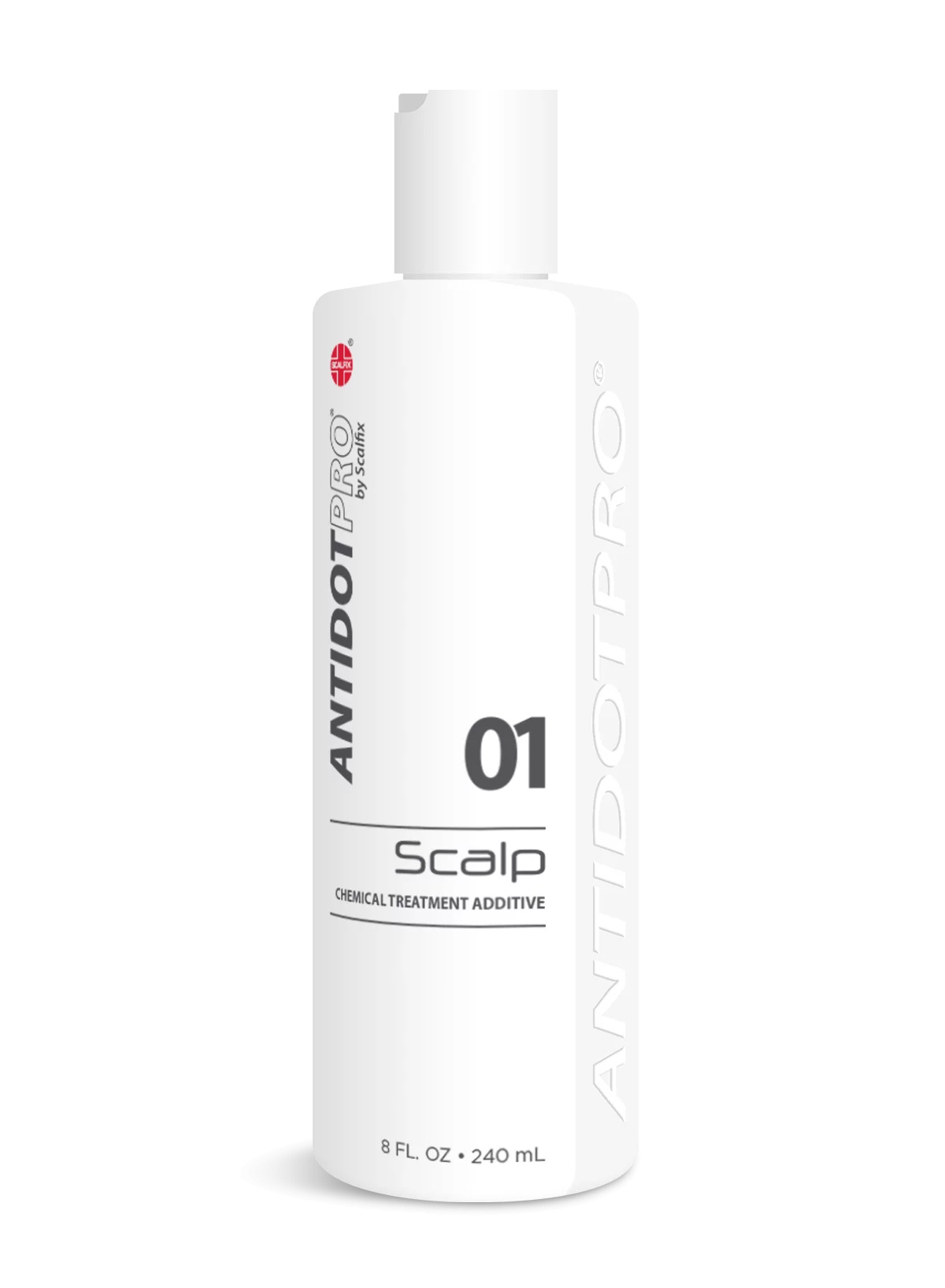 Použití: Přidejte AntidotPro SCALP 01do libovolného vlasového produktu (barva, zesvětlovač, krémový zesvětlovač, super zesvětlovač, přípravky pro opravu poškozených vazeb,přípravky pro trvalou ondulaci a chemické narovnání). Dobře promíchejte. Použijte produkt jakoobvykle. Doporučený poměr je 1 : 6, v případě extrémní citlivosti 1 : 4.