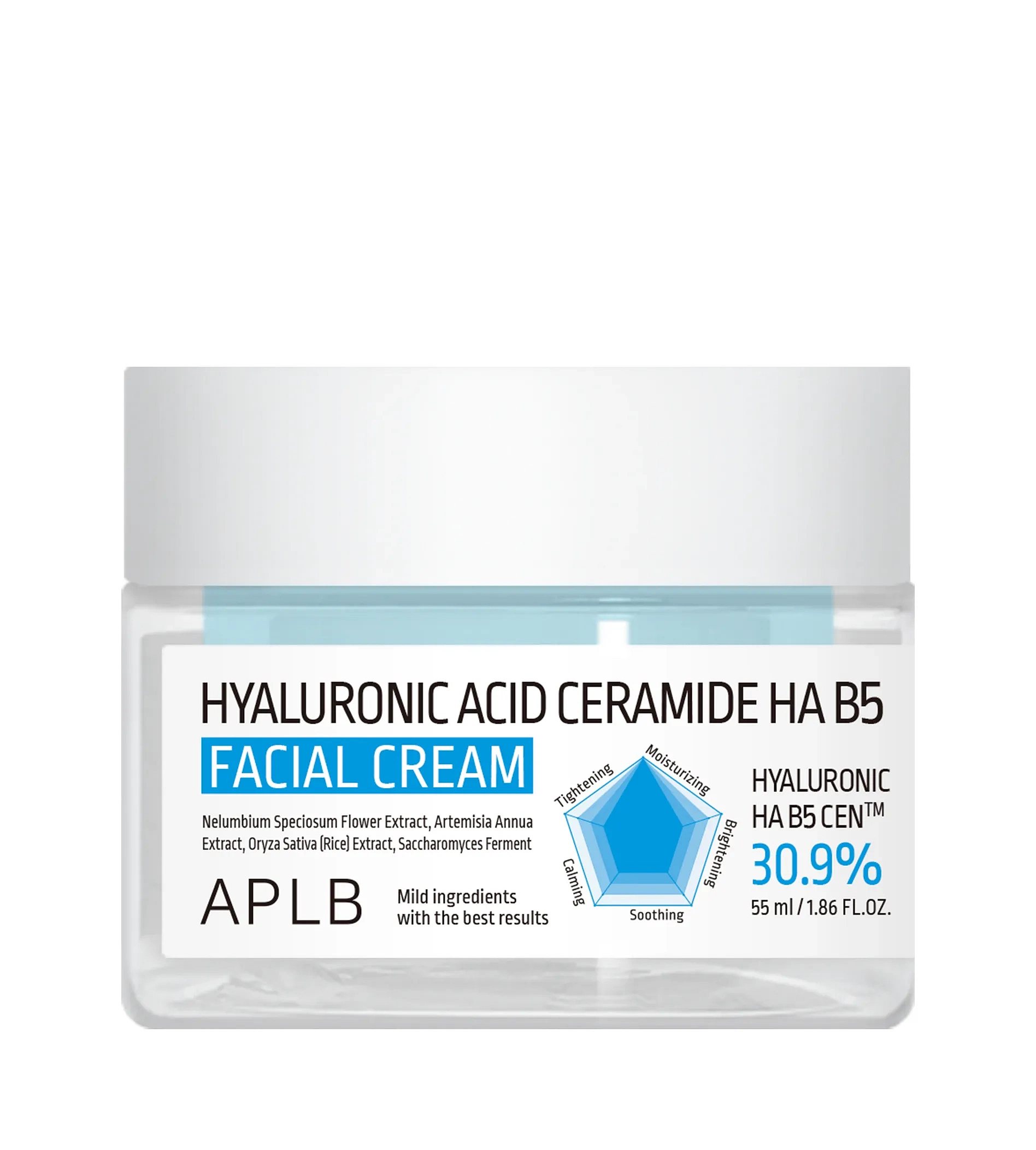 APLB Hyaluronic Acid Ceramide HA B5 Facial Cream je lehký, ale intenzivně hydratační pleťový krém, který pomáhá obnovit rovnováhu pleti a posiluje její přirozenou ochrannou bariéru. Díky kombinaci kyseliny hyaluronové, ceramidů a panthenolu (vitamin B5) pleť hloubkově hydratuje, zklidňuje podráždění a zanechává ji vláčnou, pružnou a komfortní po celý den.