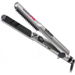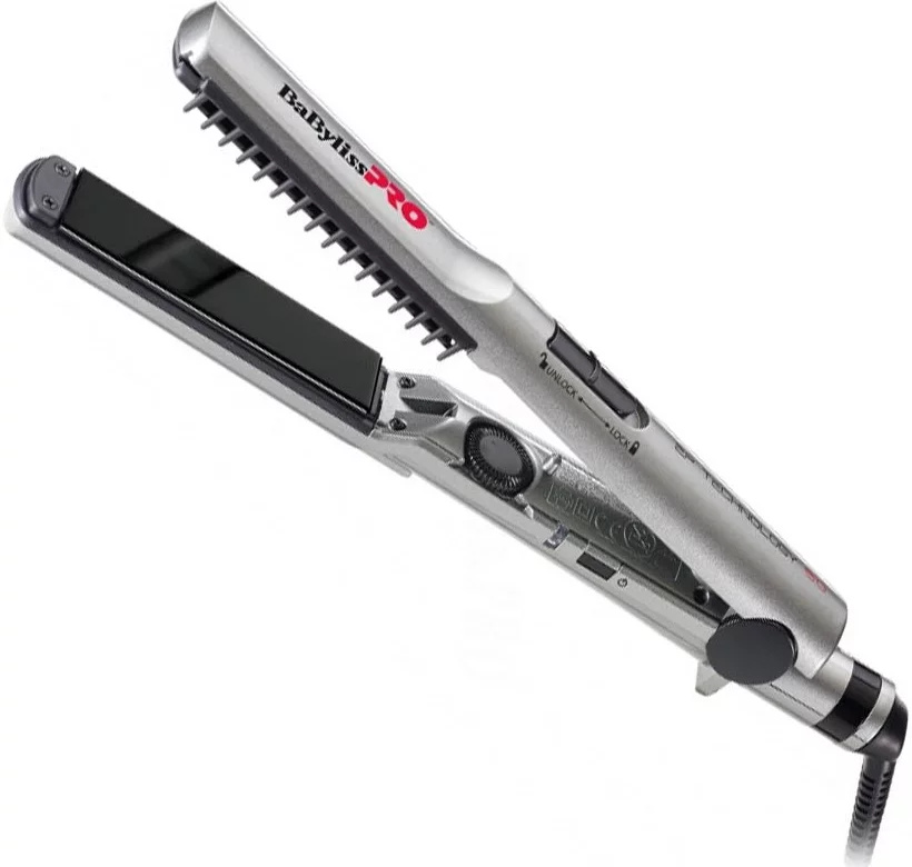 Speciálně vyvinutá žehlička na vlasy BaByliss PRO EP Technology 5.0 BAB2670EPE s odnímatelným hřebenem pro ještě lepší kontrolu při žehlení. Hřeben lze umístit na obě strany žehličky. Tato vlasová žehlička je přístroj s vynikající technologií, který byl speciálně vyvinut pro dokonalé a rychlé vyhlazení všech typů vlasů a účesů. 25 mm profesionální žehlička na vlasy BaByliss PRO s ergonomickým designem pro snadnější manipulaci. Nová EP technologie – jedná se o vysoce technický proces, podobný jako ve šperkařství, který je založen na galvanickém pokování. Ještě méně tření a tudíž šetrnější desky. Žádná chemická činidla a ještě vyšší odolnost proti vysokým teplotám. Teplo se rovnoměrně rozvádí po celém povrchu desek. Dokonalé zakončení, velmi dlouhé trvání a odolnost vůči vysokým teplotám pro intenzivní profesionální použití. Žádné tření pro jemnější pocit.