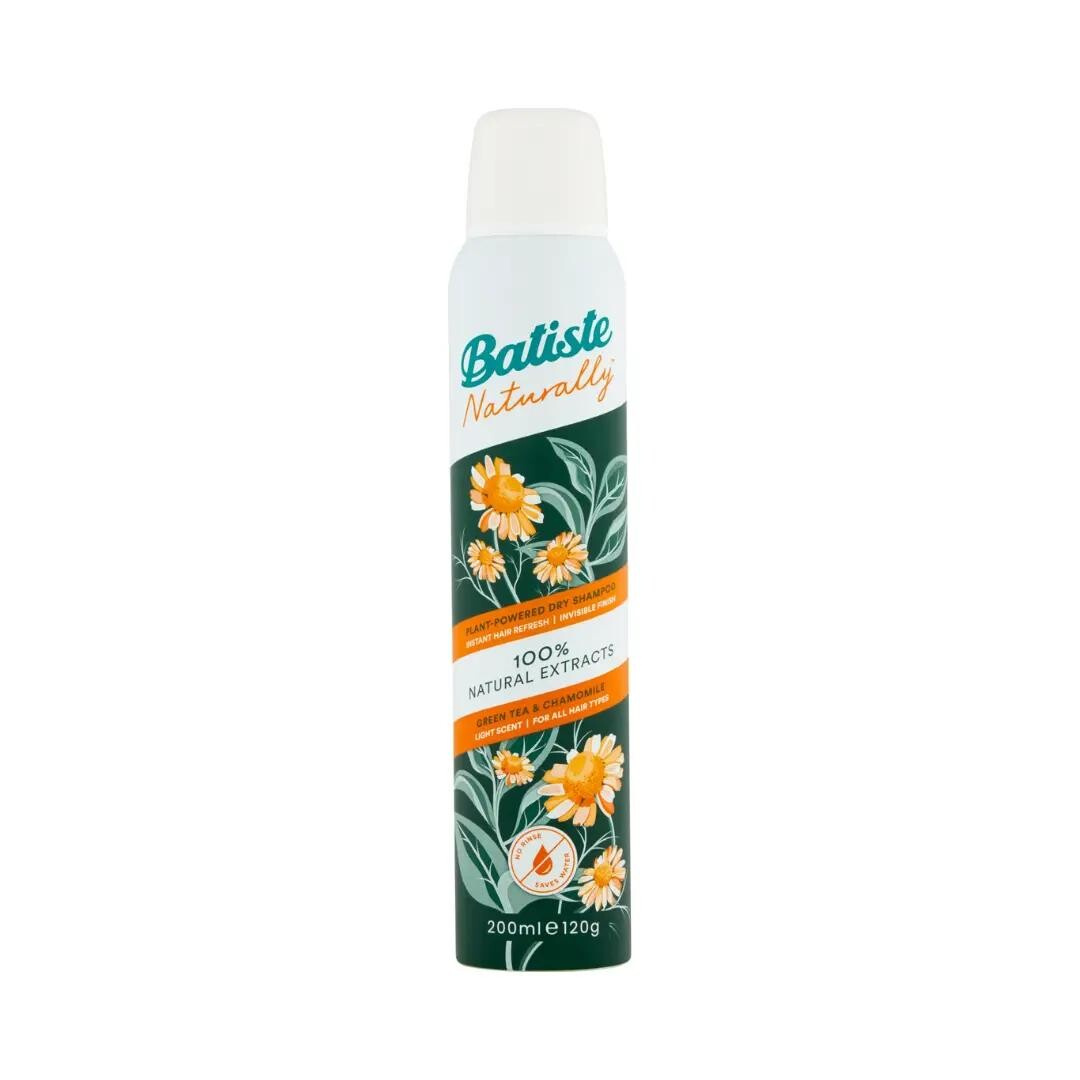 Suchý šampon Batiste Naturally Green Tea & Chamomile je šetrné řešení pro každodenní osvěžení vlasů s lehkou přírodní vůní. Obsahuje 100% přírodní rýžový škrob, který absorbuje přebytečný maz a navrací vlasům objem i lehkost – bez zbytečného zatížení. Vůně zeleného čaje a heřmánku působí svěže, jemně a přirozeně.