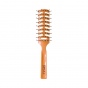 Kartáč BIFULL Orange Skeleton je lehký, vzdušný a ideální pro rychlé foukání a každodenní úpravu vlasů. Jeho otevřená konstrukce umožňuje volný průchod vzduchu, čímž zkracuje dobu vysoušení a zároveň pomáhá tvarovat účes bez přehřívání vlasů. Flexibilní plastové trny zakončené kuličkami zajišťují šetrný kontakt s pokožkou hlavy a omezují tahání i lámání vlasů.