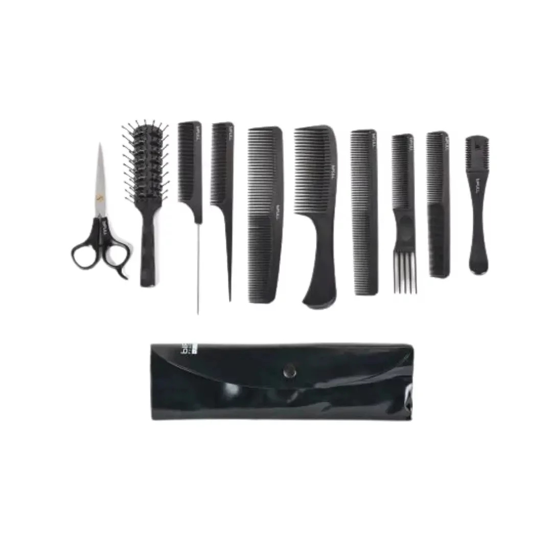 Bifull Set of 8 Combs, Scissors, Razor and Case Black