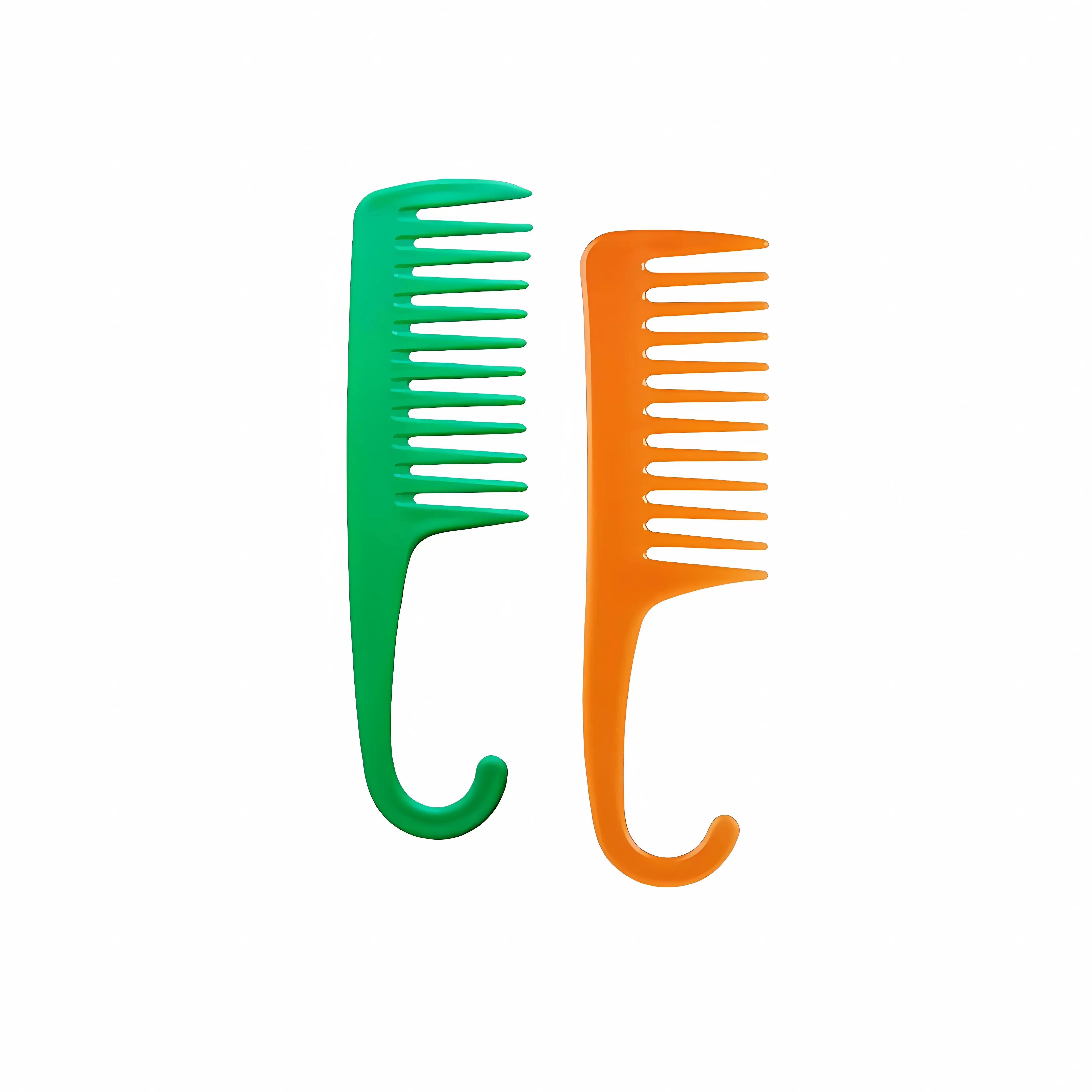 Hřeben na vlasy pro vlnité a kudrnaté vlasy. Rozestupy mezi zuby jsou dostatečně široké, aby šetrně prošly skrz prameny vlasů. Hřeben se širokými zuby na mokré vlasy je ideální pro nanášení kondicionéru nebo masky na vlasy. Praktický zahnutá rukojeť slouží k zavěšení ve sprše.