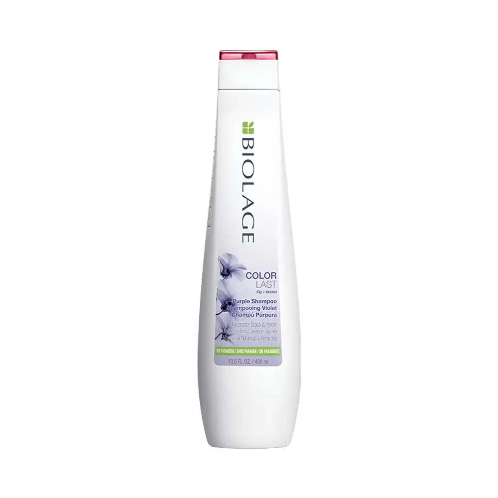 Šampon Matrix Biolage ColorLast Purple Shampoo pro zesvětlené nebo melírované blond vlasy pro eliminaci žlutých odstínů vlasů. Šampon Biolage ColorLast neutralizuje mosazné a žluté tóny blond odstínů a odstraňuje nežadoucí žluté odlesky vlasů. Spojení čistých fialových pigmentů se směsí fíku a orchideje spolehlivě uchová zdravou a vyživenou blond barvu vlasů do další návštěvy salonu. Zároveň šampon efektivně vlasy čistí, hydratuje a dodává jim lesk a objem. Výsledkem jsou zářivé studené odstíny blond vlasů.