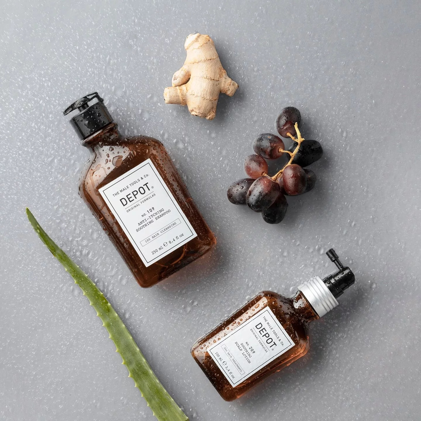 Naneste na vlhké vlasy, napěňte a opláchněte. Pro kompletní ošetření pokračujte s přípravkem 209 soothing scalp lotion.