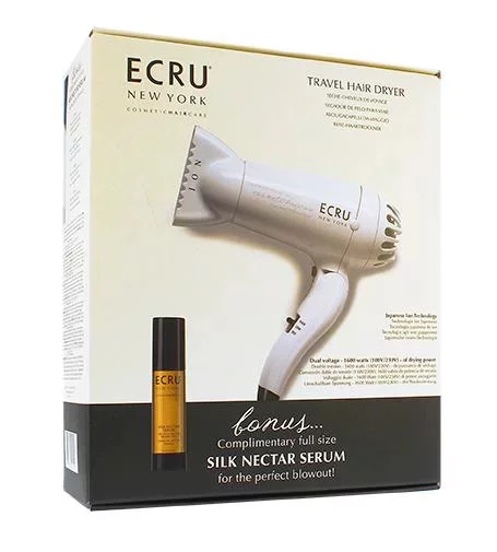 Cestovní vysoušeč vlasů Ecru New York je elegantní, výkonný cestovní fén, který využívá patentovanou japonskou iontovou technologii pro rychlé sušení bez krepatění. Tento kompaktní vysoušeč vlasů vysušuje vlasy zevnitř ven a uchovává v nich nezbytnou vlhkost pro rychlé sušení a hladké, lesklé účesy.
