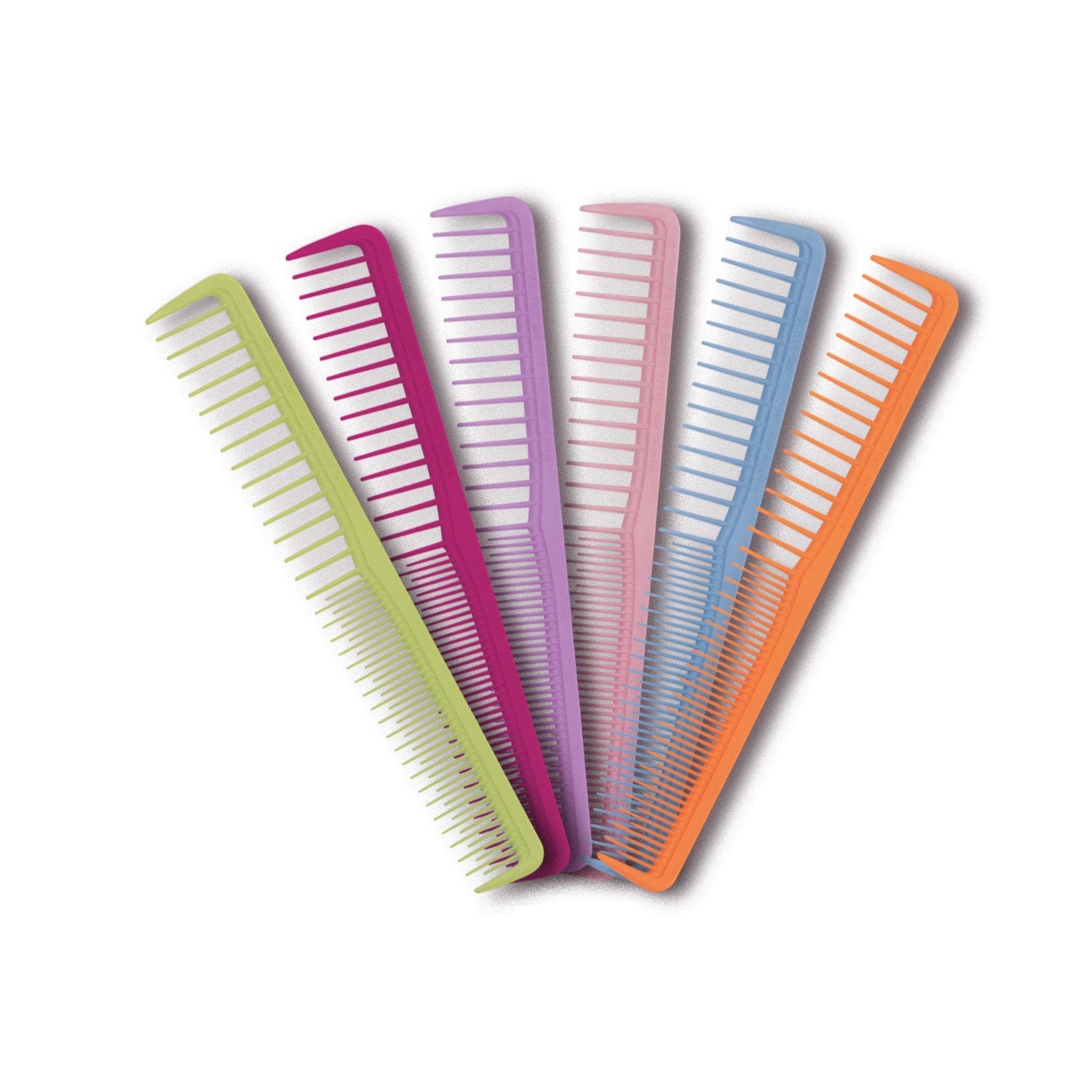 Barevné provedení hřebene dodává moderní vzhled a umožňuje snadné rozlišení při práci. Každý kus je dodáván v náhodné barvě z mixu.