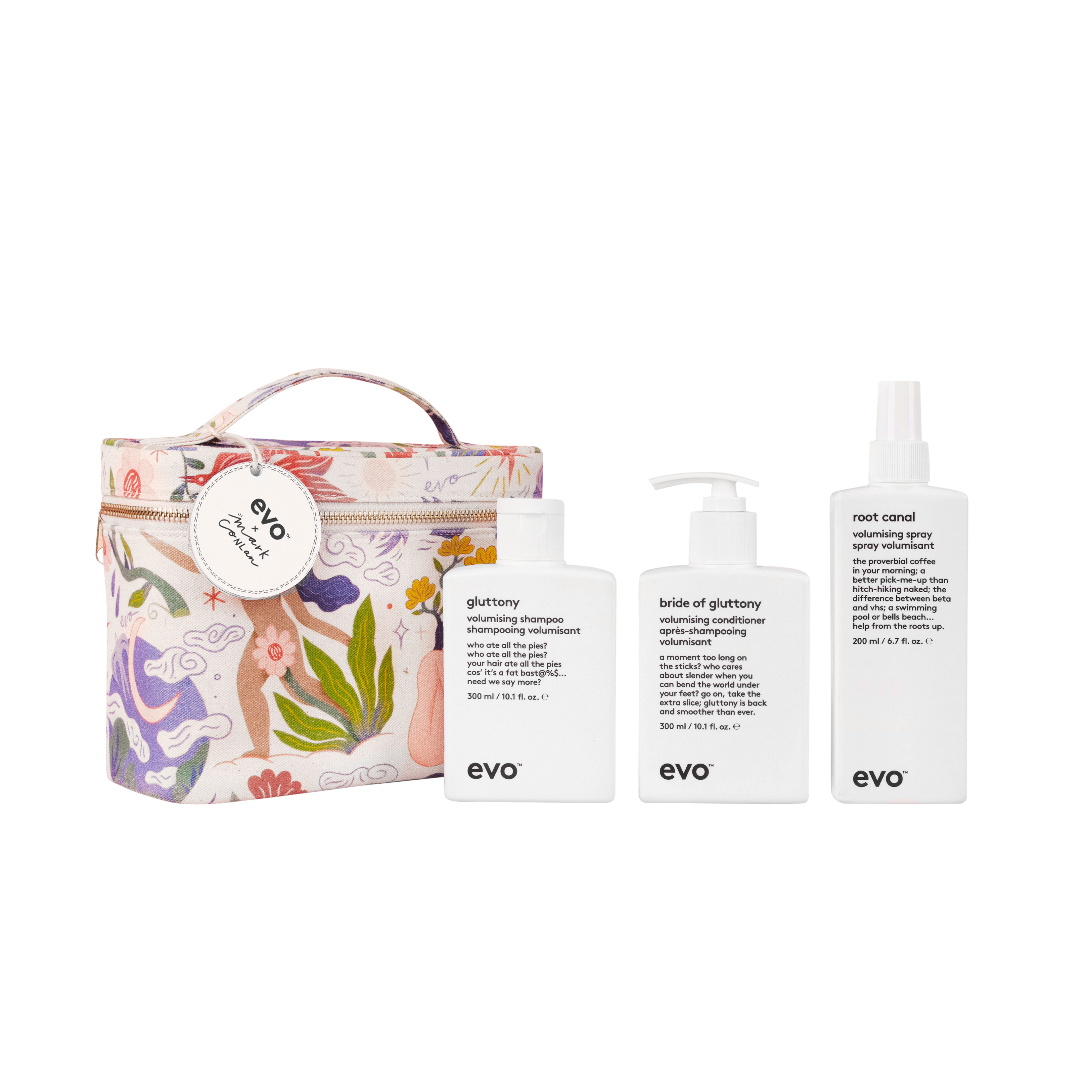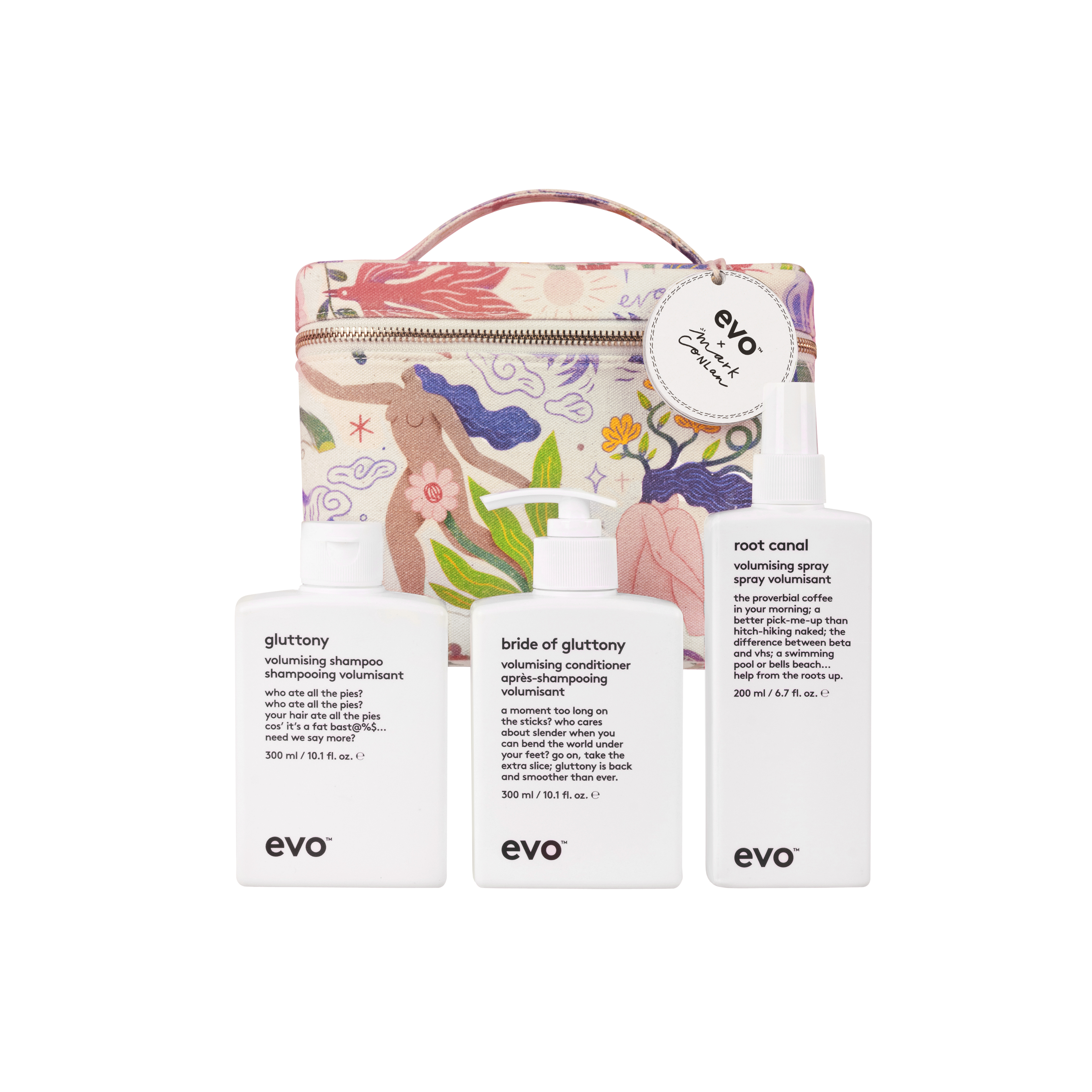 Kreativní dárková sada z limitované edice vznikla ve spolupráci s irským ilustrátorem Markem Conlanem, který svými hravými motivy vypráví malé příběhy. Evo Wonderlocks in Volume přináší kompletní péči pro jemné vlasy, které potřebují více plnosti, pevnosti a vzdušného objemu. Kombinuje objemový šampon a kondicionér pro posílení a lehkost vlasů a doplňuje je sprejem ke kořínkům, který dodá účesu texturu, nadzvednutí a přirozený lesk. Součástí balení je také limitovaná taška s ilustrací Marka Conlana, díky které je sada ideální jako dárek.