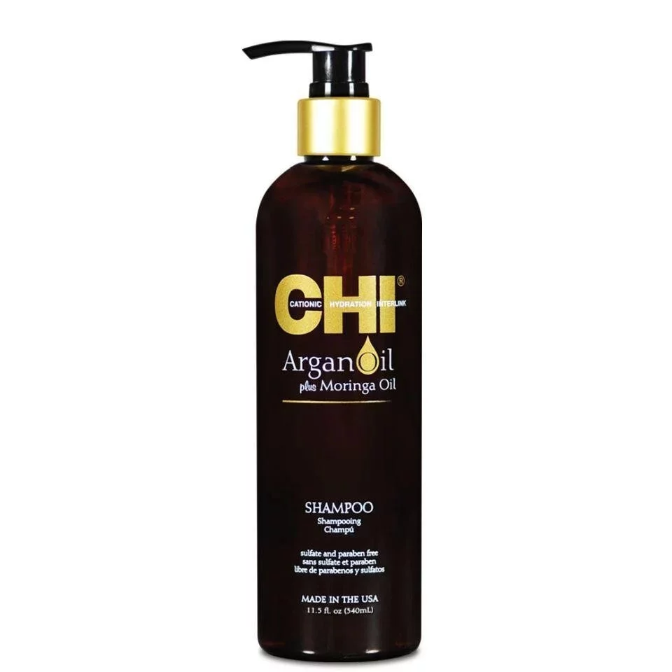 CHI Argan Oil Šampon s arganovým olejem obsahuje argalový a moringový olej, který hydratuje a vyživuje suché vlasy a zároveň dodává základní živiny pro posílení vlasů a vlasové pokožky.