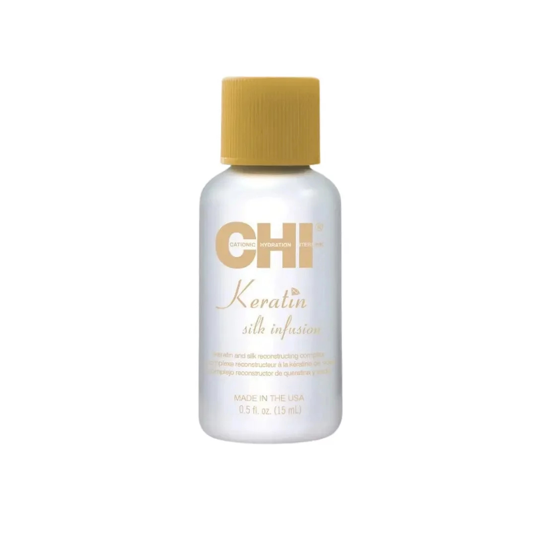 Jedinečné regenerační sérum CHI Keratin Silk Infusion je obohacené o hedvábí a dostává suché vlasy zpět do kondice.