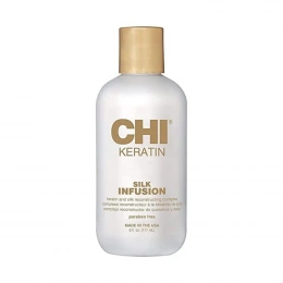 CHI Keratin Silk Infusion od Farouk Systems je luxusní bezoplachová péče, která spojuje přírodní keratin a hedvábné proteiny pro intenzivní regeneraci a obnovu vlasů. Tento lehký, nemastný přípravek proniká hluboko do vlasového vlákna, posiluje jeho strukturu, zlepšuje elasticitu a viditelně redukuje poškození způsobené chemickým ošetřením, teplem nebo nepříznivými vlivy okolí.