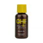Kombinace kvalitního arganového oleje a moringa oleje přináší intenzivní hydrataci, regeneraci a ochranu poškozeným, suchým nebo matným vlasům. Díky lehké konzistenci se rychle vstřebává, nezanechává mastný film a dodává vlasům přirozený lesk a hebkost. Olej rovněž působí jako přírodní ochrana proti tepelnému stylingu, UV záření a pomáhá předcházet krepatění.