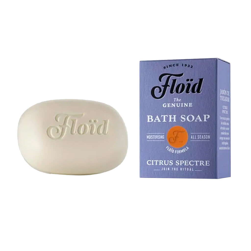 Mýdlo do koupele Floid Bath Soap Citrus Spectre jemně čistí pokožku a zanechává ji svěží a hebkou. Jeho složení je šetrné k pokožce a vhodné pro každodenní použití. Vůně Citrus Spectre přináší svěží citrusové tóny s elegantním mužným nádechem, které dodávají energii a pocit čistoty po celý den.