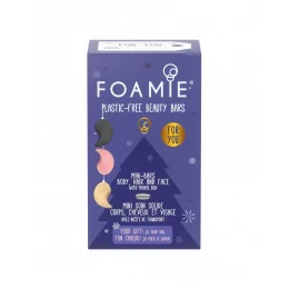 Vánoční set cestovních produktů k vyzkoušení. Balení obsahuje: 1x cestovní balení Foamie - Shampoo Bar Kiss Me Argan 1x cestovní balení Foamie Shower Body Bar Cherry Kiss With Cherry Blossom and Rice Milk 1x cestovní balení Foamie Cleansing Face Bar Too Coal to Be True Normal to combination skin 1x cestovní pouzdro Travel Buddy 1x sáček na mýdlo
