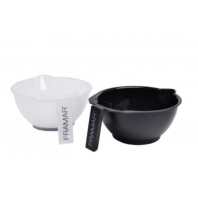 Misky jsou vyrobeny z nárazuodolného materiálu a mají držadlo pro snadný přesun od barvicího pultu až ke kadeřnickému křeslu.