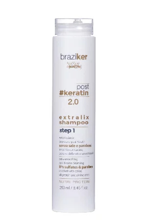 FL BRAZIKER EXTRALIX šampon. Šampon bez soli, který jemně čistí a pomáhá zachovat a prodloužit výsledek ošetření. Obohacený o kaviár, proteiny z hedvábí, aminokyseliny. Hydratuje pokožku a chrání před poškozením, revitalizuje a uhlazuje vlasy. Neobsahuje parabeny.