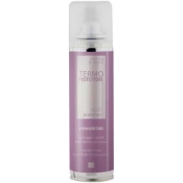 Termoprotektor - sprej pro tepelnou ochranu. Jeho ochranný film zabraňuje poškození vlasů,vysychání vlasové pokožky, chrání vlasy před vysokými teplotami při žehlení vlasů a fénování vlasů. Produkt má antistatický účinek. Použití: Nastříkejte na vlhké vlasy před fénováním, na suché vlasy před použitím žehličky nebo kulmy. Obsah: 150 ml