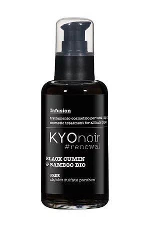 Freelimix KYO KYONOIR BIO infuze na vlasy. Infuze sérum díky svému vysokému obsahu extraktu z bambusu a černého kmínu poskytuje vlasům tu nejluxusnější péči. Dodává vlasům hlubokou výživu, hydrataci, hebkost, lesk bez zatížení, zabraňuje třepení vlasů. Má antioxidační a energizující vlastnosti. Obsahuje vysoký podíl mastných kyselin, Omega 3 a 6. Neobsahuje parabeny, sulfáty, silikony, SLS/SLES a barviva. Černá barva nemá žádný nežádoucí dopad na blond vlasy. Je vhodný pro všechny typy vlasů.