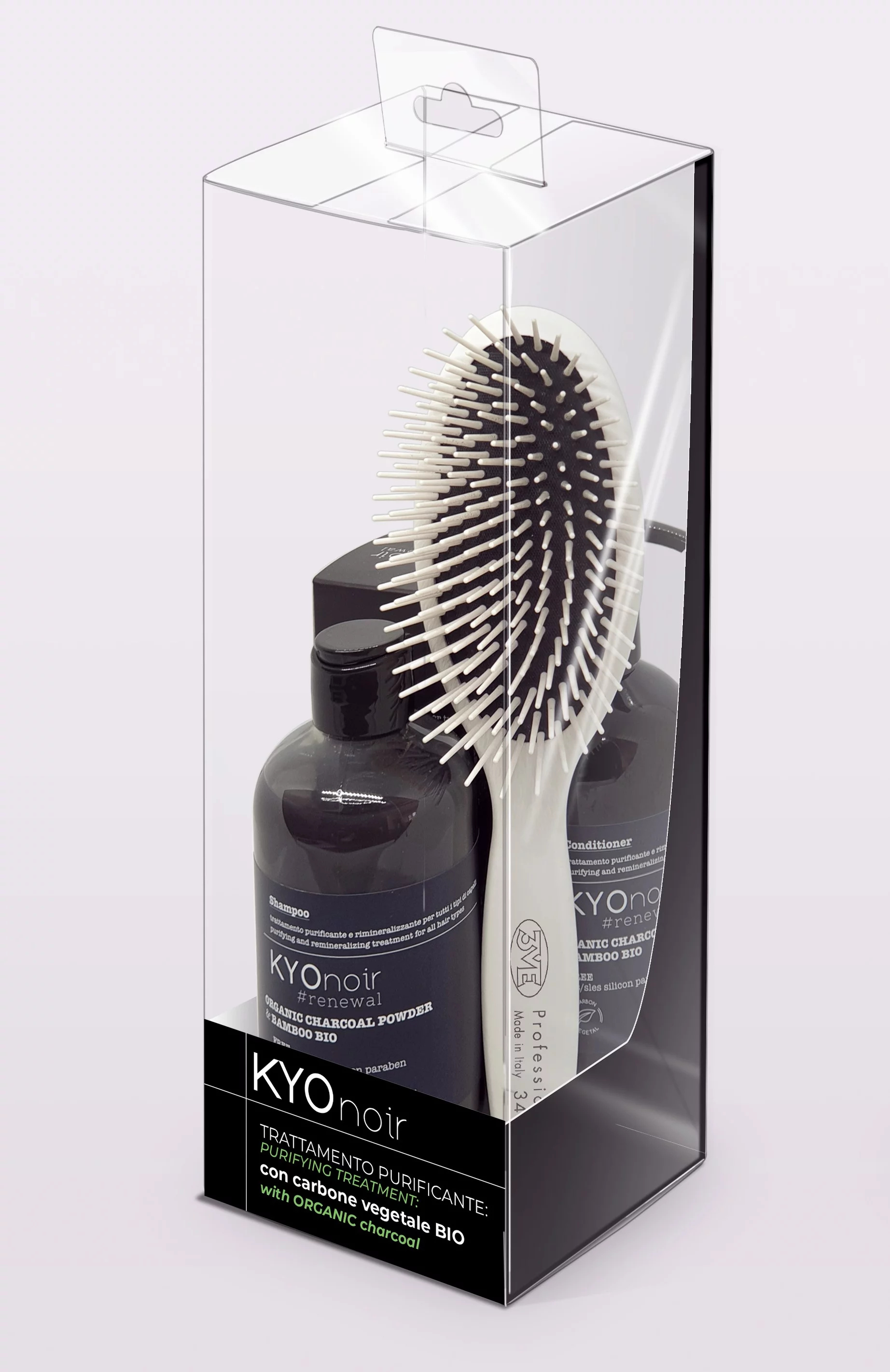 1. Šampon pro detoxikaci, osvěžení a remineralizaci vlasů. Obsahuje prášek z organického uhlí a bambusový extrakt. Má velmi čistící účinek, absorbuje nečistoty, toxiny a znečišťující látky. Neobsahuje parabeny, sulfáty, silikony, SLS/SLES a barviva proto černá barva nemá žádný nežádoucí dopad na blond vlasy. Je vhodný pro všechny typy vlasů.