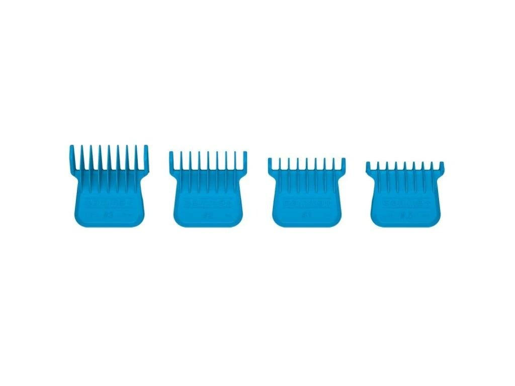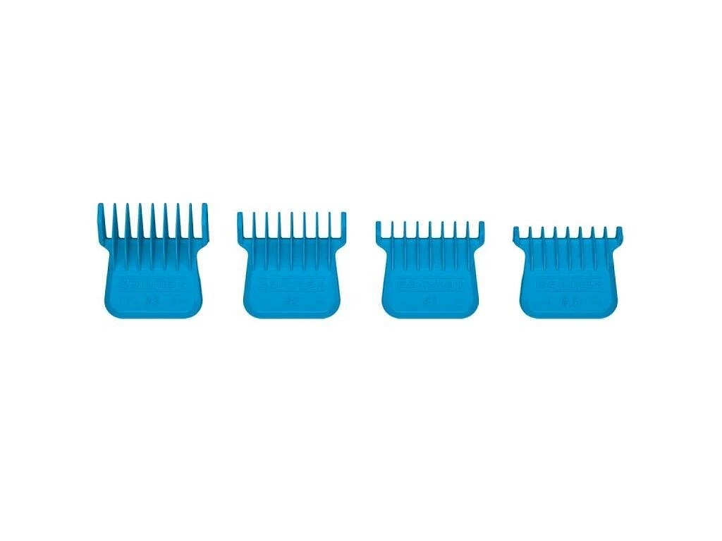 Sada obsahuje čtyři základní délky (1,5 mm, 3 mm, 6 mm a 9 mm), což pokrývá nejčastější potřeby při práci s konturovacím strojkem – od velmi krátkého střihu až po jemné přechody.