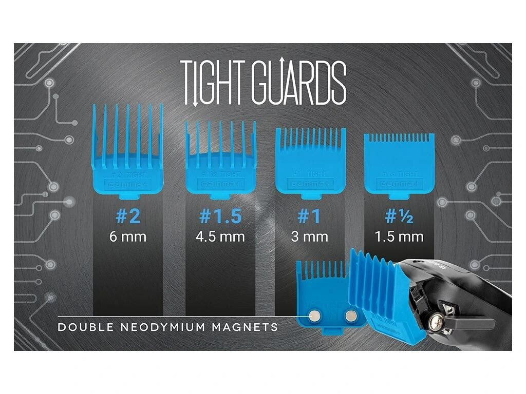 Gamma+ TIGHT hřebeny s dvojitým magnetem jsou profesionální nástavce navržené pro maximální přesnost při krátkých střizích a detailní práci. Díky tenčímu (tight) provedení umožňují přesnější kontrolu nad délkou střihu a jsou ideální zejména pro fade techniky a práci u pokožky.