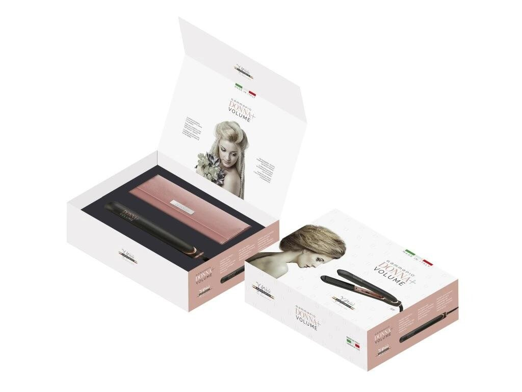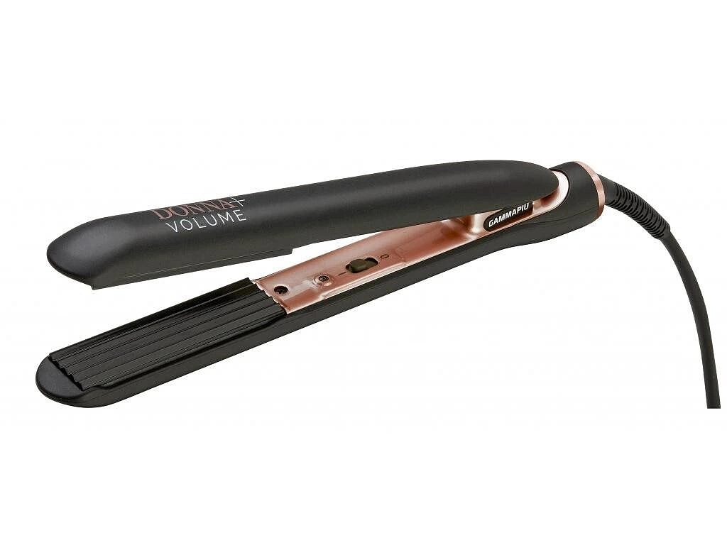 Gamma+ VOLUME Donna+ je profesionální krepovací žehlička na vlasy navržená pro maximální objem, strukturu a kreativní styling. Díky speciálním keramickým matricím obohaceným diamantovým práškem vytváří výrazný frisèe efekt a dodává vlasům plnost již od kořínků bez zbytečného zatěžování.