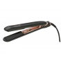 Keramický povrch s diamantovým práškem zajišťuje hladký skluz po vlasech, minimalizuje tření a zároveň dodává vlasům lesk a hebkost. Výsledkem jsou objemné, strukturované a přirozeně vypadající účesy bez krepatění.