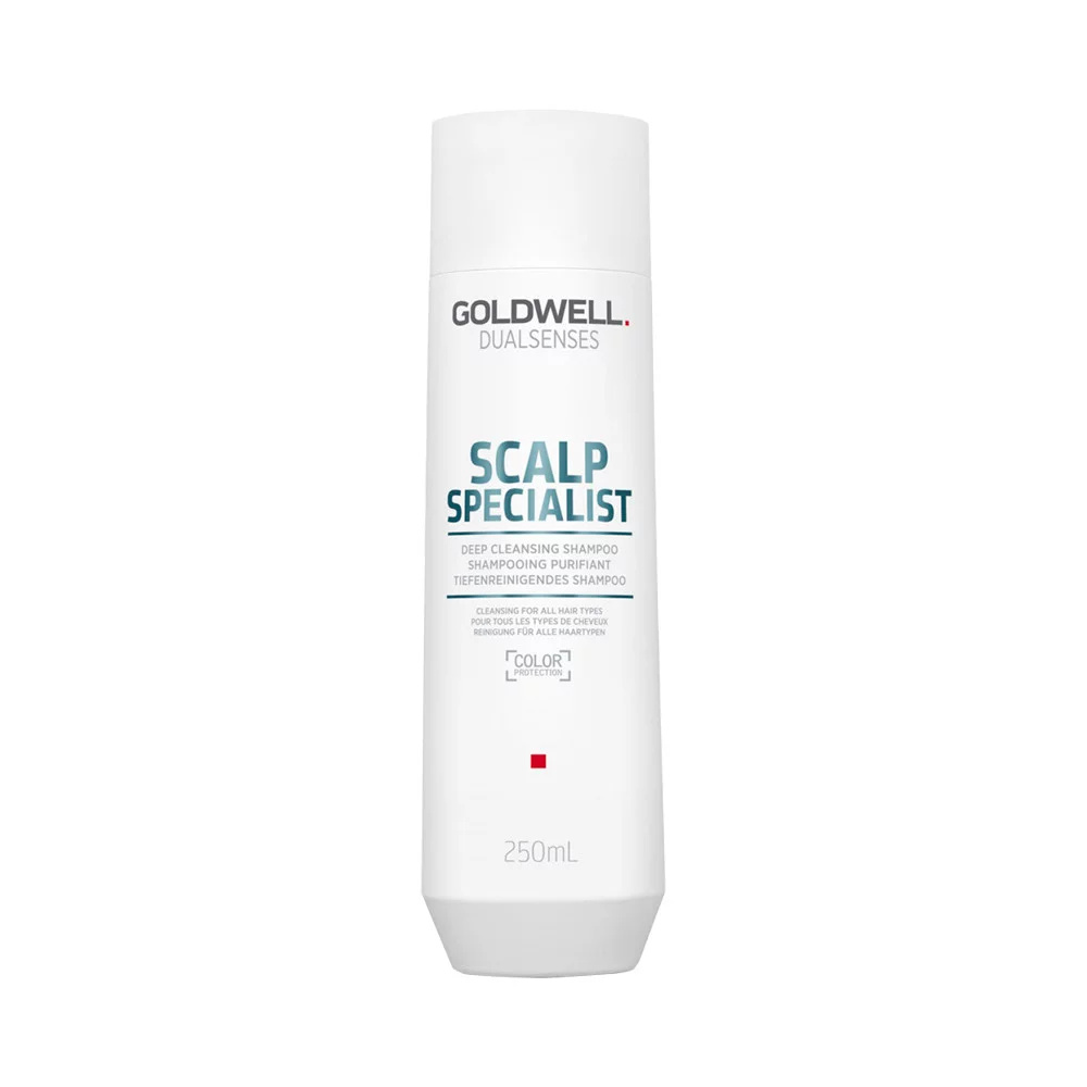 Goldwell Dualsenses Scalp Specialist Deep Cleansing Shampoo je šampon pro všechny typy vlasů, který důkladně pečuje o pokožku hlavy. Efektivně odstraňuje zbytky vlasového stylingu, kožního mazu a chlóru. Okamžitě dodá pocit svěžesti a čistoty. Složení používající technologie microPROtec complex a Zinc-PCA napomáhá regulovat tvorbu kožního mazu a chrání barvu vlasů.