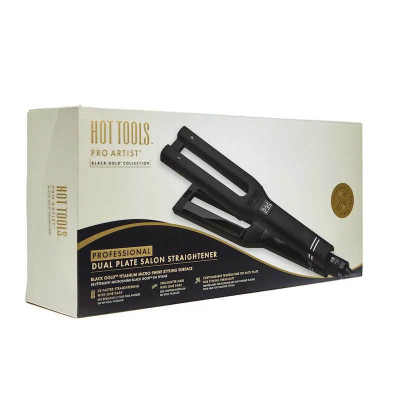 - Nezávislé ovládání 12 mm Black Gold titanových destiček možnost si přizpůsobit teploty na levé a pravé destičce pro všestrannost stylingu