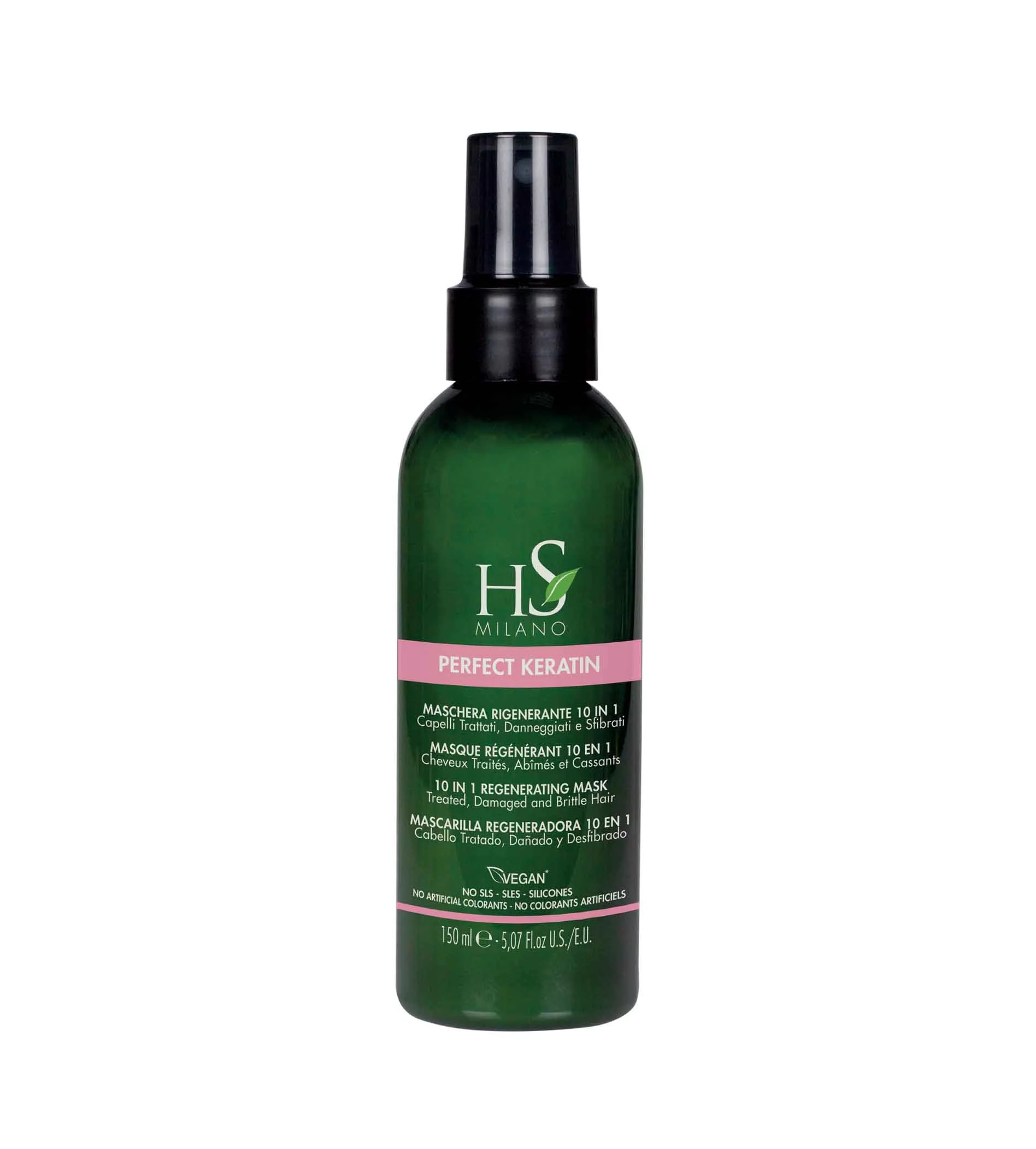 Regenerační maska ve spreji 10 v 1 na kosmeticky upravené, poškozené a vyčerpané vlasy. Se složením obohaceným o rostlinný keratin posiluje vlasy, ošetřuje je, intenzivně hydratuje a zlepšuje jejich rozčesatelnost, pro okamžitý efekt hebčí, objemnější a viditelně zdravější vlasy.
