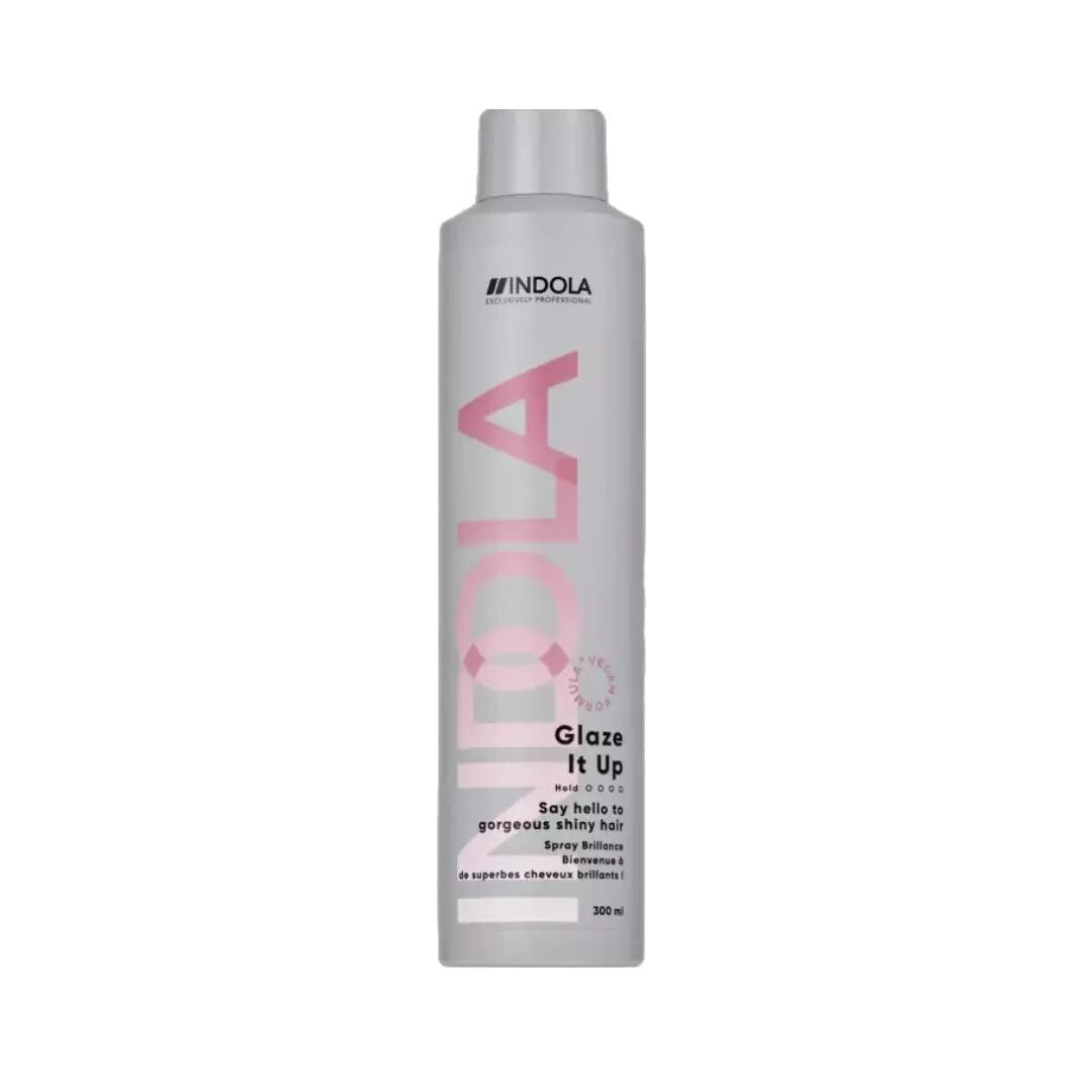 Indola Glaze It Up (někdy označovaný jako „Smooth Glaze It Up“) je jemný sprej na vlasy navržený pro oslnivý lesk a hladký finiš bez zatížení vlasů. Díky ultrajemné mlze rovnoměrně pokrývá prameny, uhlazuje vlasové vlákno a pomáhá eliminovat krepatění. Je vhodný pro všechny typy vlasů a při použití zanechává vlasy lesklé, hebké, ale ne těžké ani mastné.