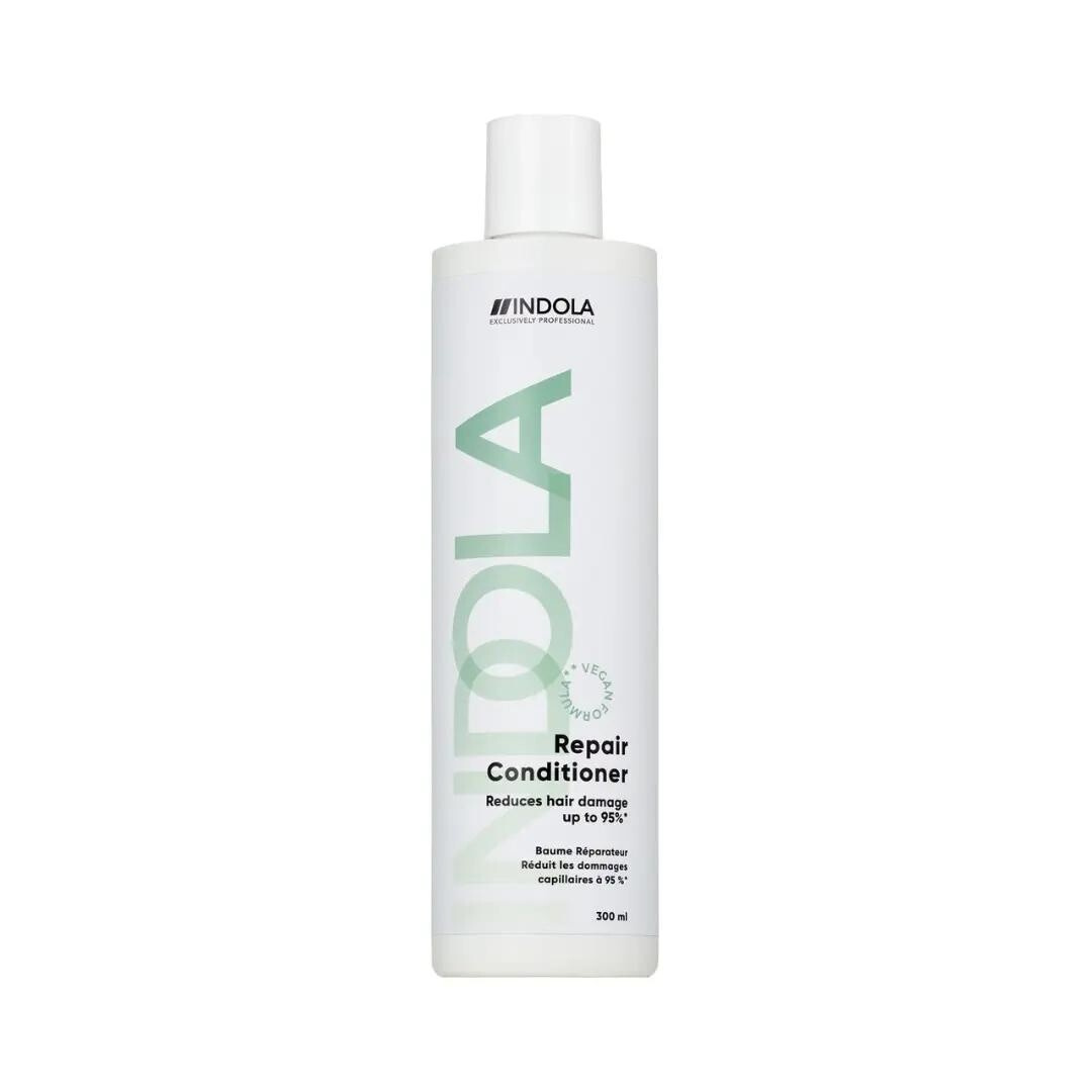Indola Repair Conditioner je intenzivně pečující balzám, navržený pro obnovu a posílení poškozených, barvených či chemicky ošetřených vlasů. Veganská formule s alternativou keratinu, panthenolem a marulovým olejem proniká do vlasového vlákna, zpevňuje strukturální kutikulu, usnadňuje rozčesávání a chrání vlasy proti lámání až o 95 %.