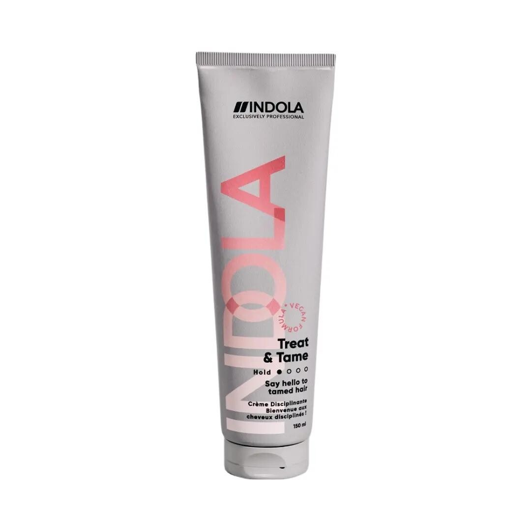 Indola Treat & Tame Cream je intenzivní stylingový krém navržený k účinnému uhlazení nekrotých a krepatých vlasů. Obsahuje glycerin, který hloubkově vyživuje, zlepšuje rozčesatelnost a přináší pocit hebkosti. Formule je obohacena o ochranu proti vlhkosti a tepelným vlivům až do 230 °C, díky níž zůstává vlasová struktura chráněná během fénování nebo difúzoru.