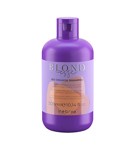 Šampon proti oranžovým odleskům Inebrya Blondesse No-Orange Shampoo čistí a ošetřuje vlasy, dodává jim lesk a hydrataci a současně neutralizuje oranžové a měděné odlesky. Díky svému jemnému efektu Icy Blue je ideální na přirozeně bílé nebo odbarvené vlasy.