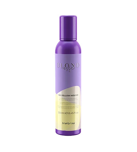 Pěnový kondicionér proti žlutým odleskům Inebrya Blondesse No-Yellow Mousse neutralizuje nežádoucí žluté odlesky a dodává vlasům hebkost a zářivý lesk.
