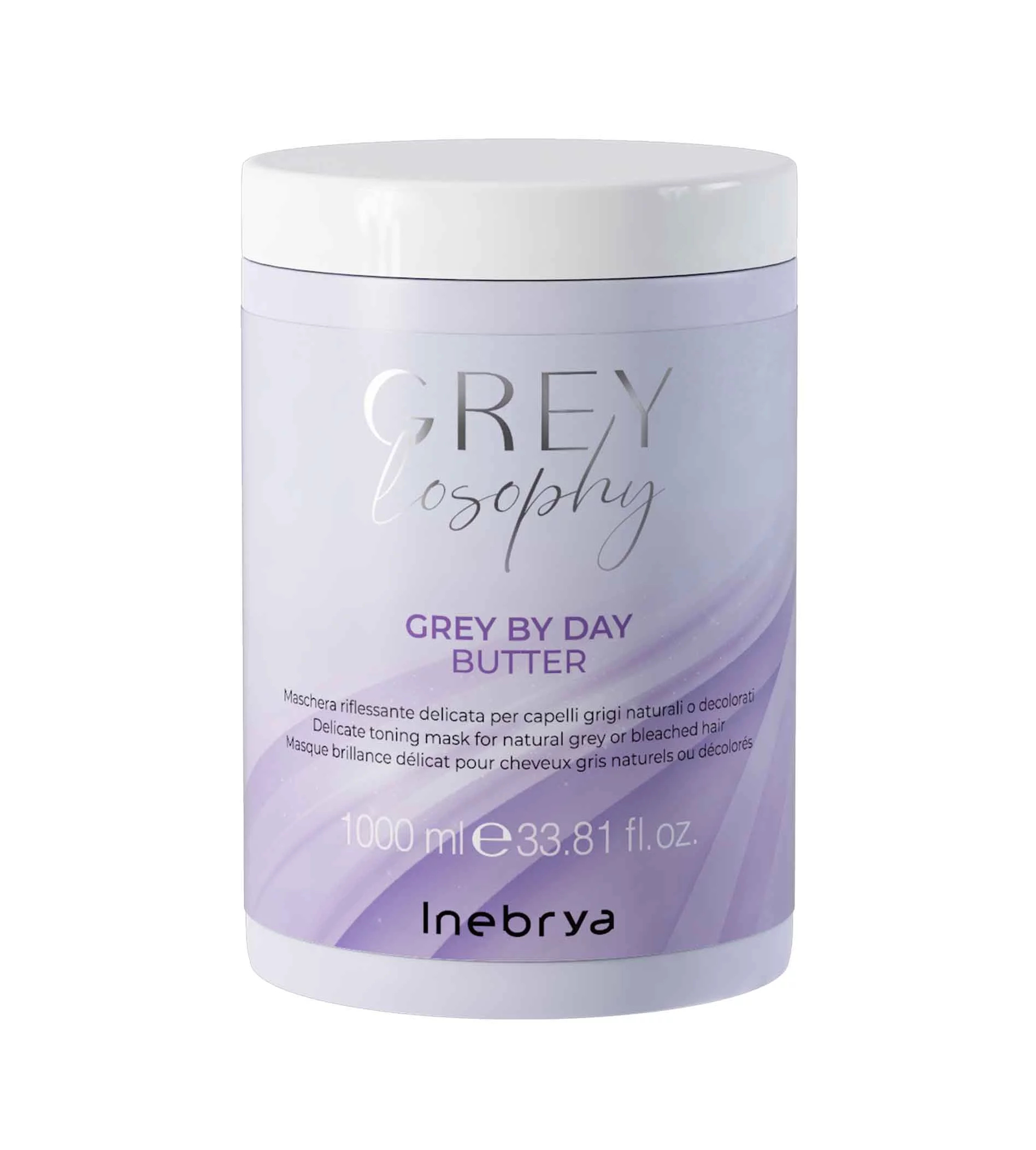 Inebrya Grey By Day Butter 1000 ml je jemná tónovací maska navržená speciálně pro přírodní šedé a odbarvené platinově blond vlasy. Tato maska je obohacena o avokádový olej a bambucké máslo, které poskytují intenzivní hydrataci, výživu a lesk. Díky svému složení pomáhá eliminovat nežádoucí žluté tóny, zvyšuje lesk a usnadňuje rozčesávání vlasů. Produkt je 100% veganský a neobsahuje silikony.