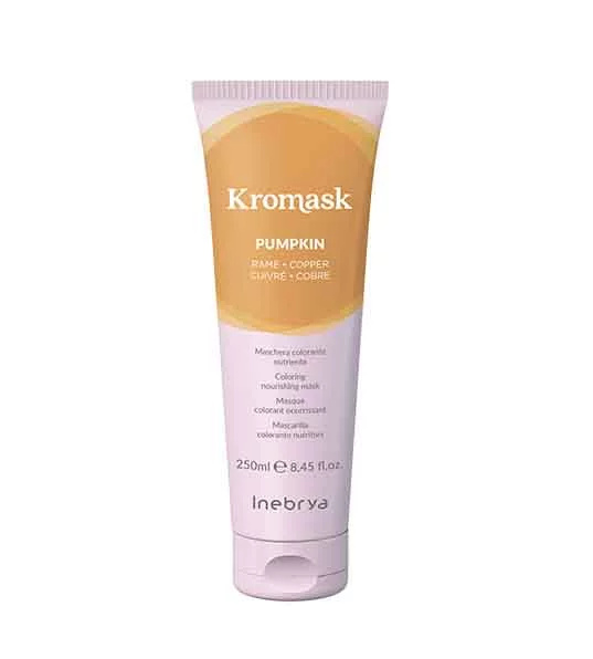 Dokonalá kombinace hydratačního krému a přímých pigmentů, která umožňuje dodat vlasům vlhkost, ochranu a barvu, rozzářit a oživit tón. Kromask je určen pro přírodní i barvené/odbarvené vlasy, které chrání před ztrátou vlhkosti, dodává jim barvu a lesk. Pumpkin je plný a chladný oranžový odstín, který dokáže oživit jakýkoli tón a dodává teplo tmavším barvám a oranžový tón světlejším odstínům. Lze jej míchat s dalšími odstíny pro vytvoření tepla a umožňuje nekonečnou kreativitu.