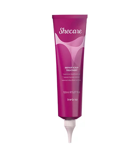 Intenzivní péče Inebrya Shecare obohacená o keratin rostlinného původu, glukono-delta-lakton, mentol a piroktolamin pomáhá v odstraňování lupů, zklidňuje vlasovou pokožku a obnovuje její rovnováhu.