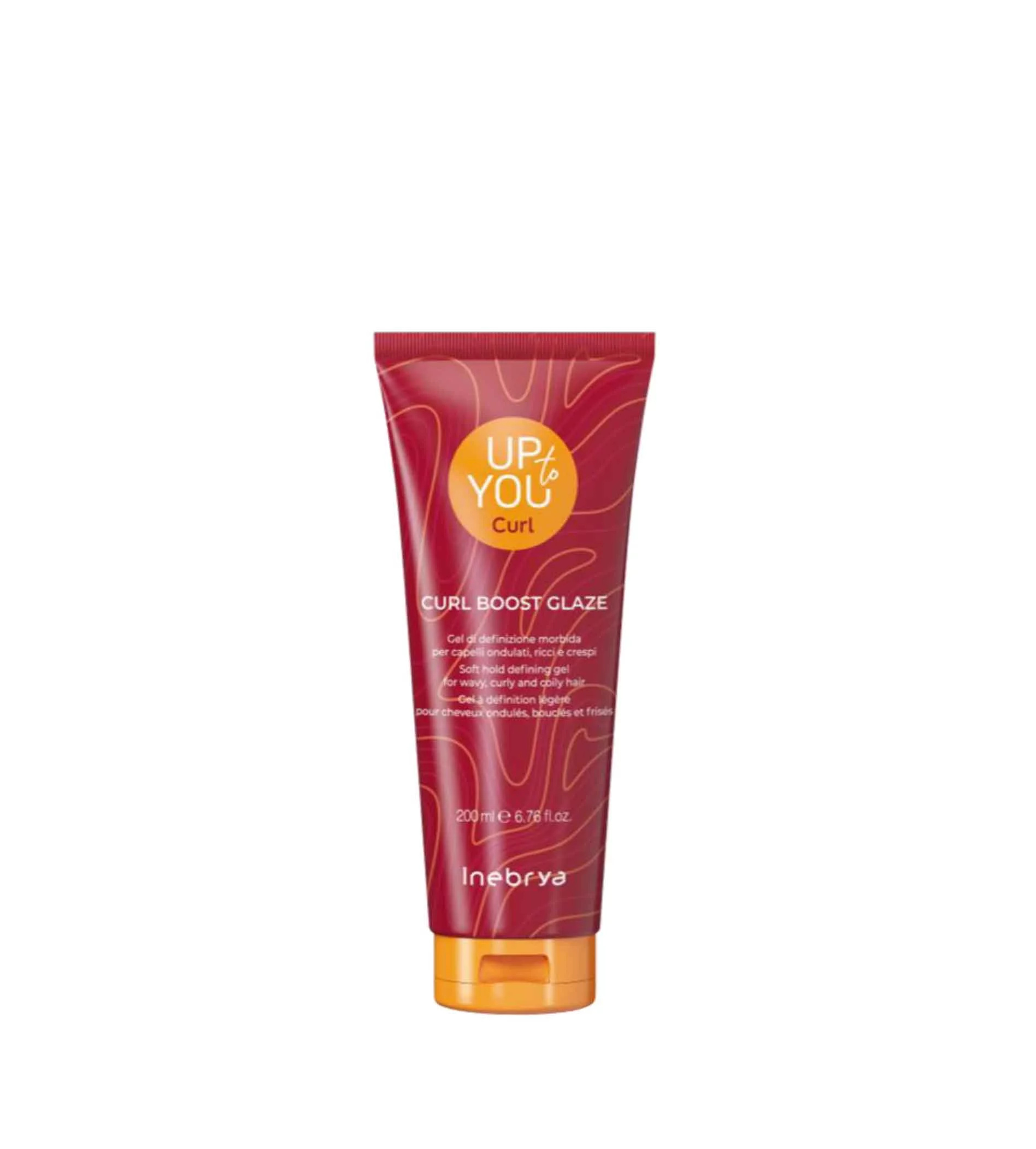 Inebrya Up To You Curl Boost Glaze je stylingový gel navržený speciálně pro vlnité, kudrnaté a krepaté vlasy. Jeho veganská formule, bez SLES, SLS a silikonů, pomáhá definovat přirozené vlny a kudrliny, eliminuje krepatění a dodává pružnost a lesk. Obsahuje extrakty z banánu, manga, maliny a caja, které jsou bohaté na vitamíny, minerály a antioxidanty, čímž regenerují strukturu vlasů a chrání je před vnějšími vlivy. Lehká textura gelu poskytuje střední fixaci, aniž by vlasy zatěžovala nebo slepovala, a umožňuje přirozený pohyb vlasů.