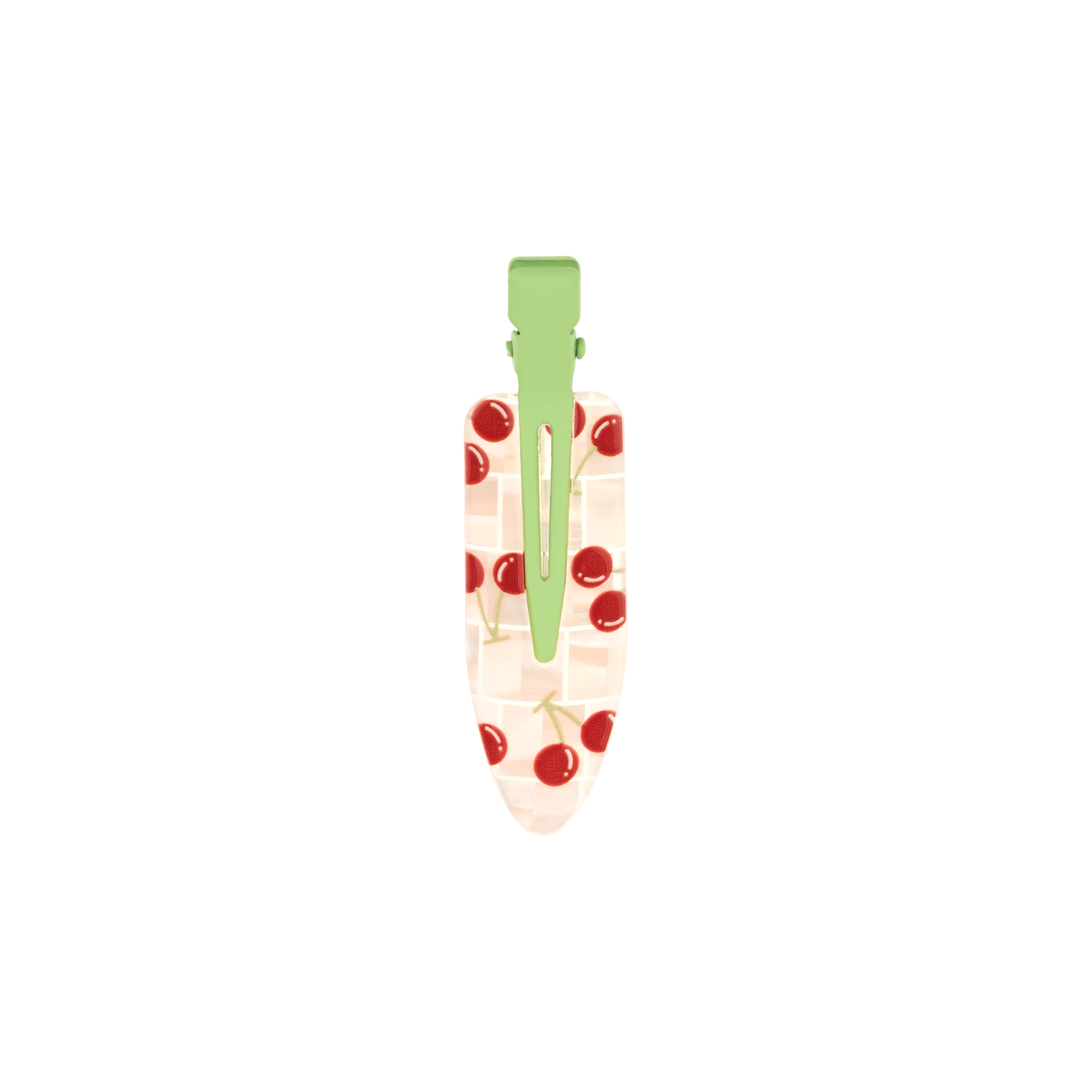 Osvěžte svůj vzhled s těmito hravými sponkami IB CLIPSTAR Cherry Topping! Tato sada obsahuje dvě roztomilé sponky s originálními designy: jednu s trendy růžovým a bílým kostkovaným vzorem a druhou zdobenou veselými třešničkami. Obě sponky mají svěží zelené detaily, které dodají vašemu účesu jiskru. Jsou ideální pro dodání šmrncu každodennímu stylingu, skvěle drží a jsou šetrné k vlasům.