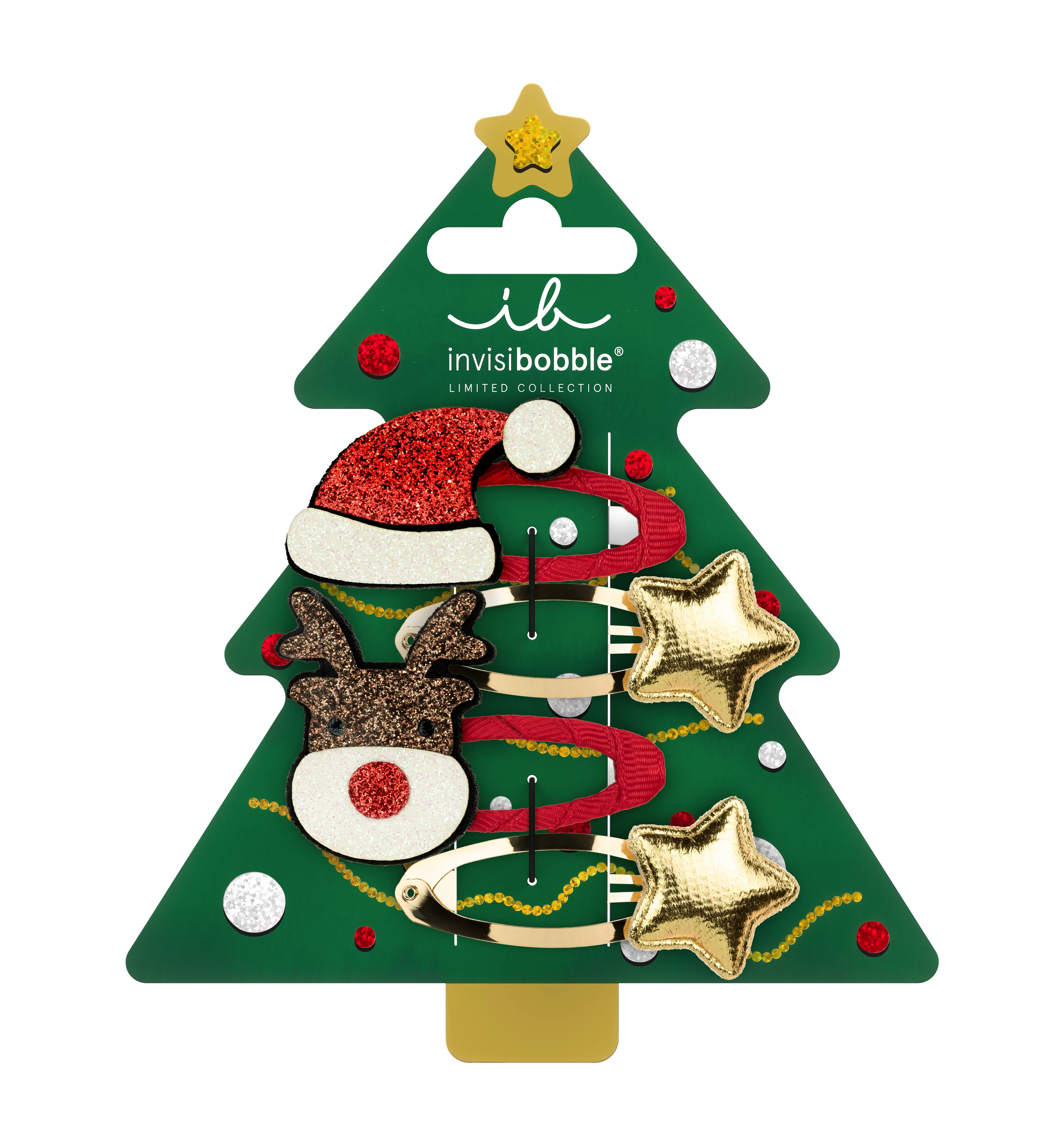 IB CLIPSTAR KIDS Winter Wonderland 4 ks Roztomilé dětské sponky s vánočními motivy, šetrné k vlasům, pevně drží bez tahání. Vhodné pro každodenní nošení i sváteční účesy. Lehký plastový materiál. Typ: pukačky, počet: 4 ks, pro děti, použití na mokré i suché vlasy. Ideální doplněk pro zimní období a slavnostní chvíle.