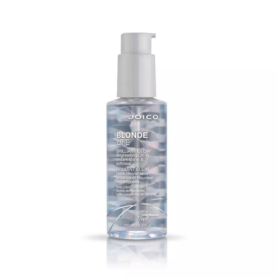 Joico Blonde Life Brilliant Glow Brightening Oil je lehký rozjasňující olej navržený speciálně pro blond a melírované vlasy. Okamžitě dodává vlasům oslnivý lesk, vyhlazuje je a chrání před poškozením. Díky své čiré konzistenci nezanechává žádné barevné stopy, což je ideální pro všechny odstíny blond.