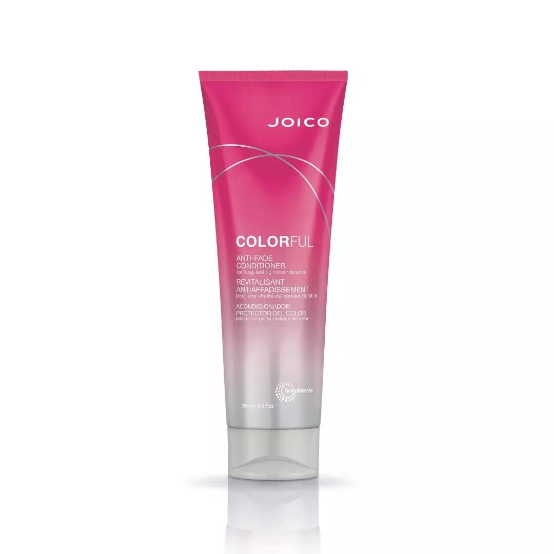 Joico Colorful Anti-Fade Conditioner je pečující kondicionér vyvinutý speciálně pro barvené vlasy, který pomáhá chránit barvu před vyblednutím a dodává vlasům hebkost a lesk. Lehká krémová textura nezatěžuje vlasy, usnadňuje rozčesávání a zanechává vlasy jemné, vyživené a plné života.