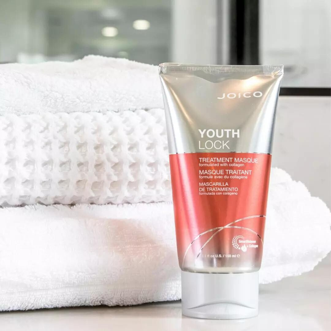 Joico YouthLock Masque je intenzivní regenerační maska obohacená o kolagen a antioxidanty, cíleně vyvinutá pro suché, křehké a stárnoucí vlasy. Už během jediné aplikace vlasům dodává výraznou měkkost, lesk a pružný objem, výrazně redukuje krepatění i lámavost, a podporuje pevnost při česání. Výsledkem jsou zdravě vypadající, hebké a pružné vlasy.