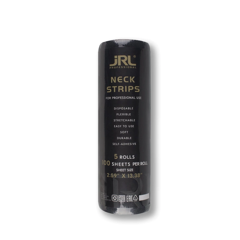 JRL Neck Strips Black 5×100 ks jsou profesionální hygienické krční pásky v elegantním černém provedení, určené k ochraně zákazníka při stříhání, barvení nebo stylingu vlasů. Zabraňují pronikání odstřižených vlasů a kosmetických přípravků na pokožku i oblečení a zároveň poskytují maximální komfort. Jsou vyrobené z měkkého a pružného materiálu, který se snadno přizpůsobí každému obvodu krku a spolehlivě drží. Praktické balení 5 rolí po 100 kusech je ideální pro každodenní profesionální použití.