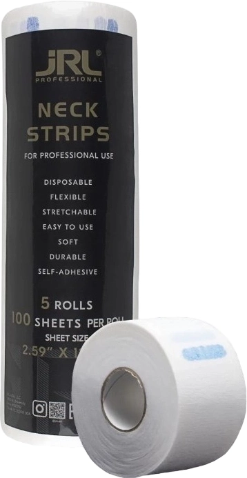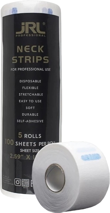 JRL Neck Strips White 5×100 ks jsou hygienické krční pásky určené k ochraně zákazníka při stříhání, barvení nebo stylingu vlasů. Spolehlivě zabraňují pronikání odstřižených vlasů a kosmetických přípravků na pokožku i oblečení, čímž zajišťují maximální komfort a čistotu během služby. Jsou vyrobeny z měkkého a pružného materiálu, který se snadno přizpůsobí obvodu krku a zároveň pevně drží na místě. Praktické balení 5 rolí po 100 kusech je ideální pro každodenní použití v profesionálních salonech.