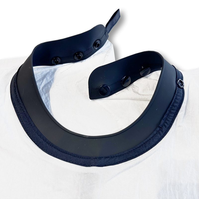 Pláštěnku nasaďte zákazníkovi kolem krku a upevněte pomocí gombíků.