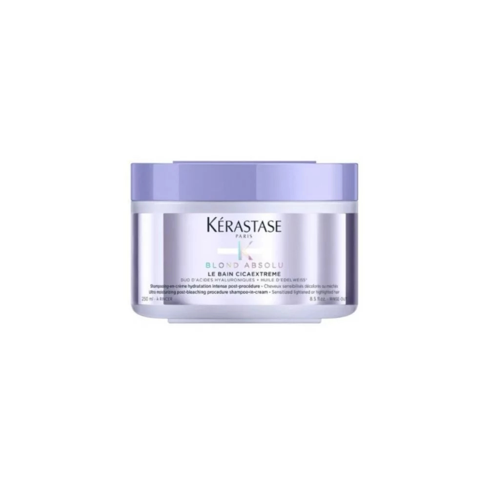 Vysoce hydratační šampon v krému Kérastase Blond Absolu Le Bain Cicaextreme je ideální po odbarvování. Vlasy posiluje a vyživuje. Je vhodný pro zesvětlené nebo melírované vlasy.