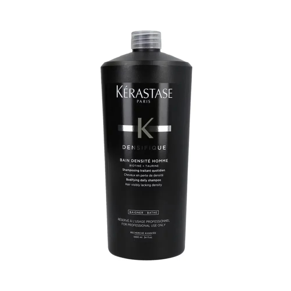 Kérastase Densifique Bain Densité Homme je osvěžující a zpevňující šampon pro muže. Každodenní pečující šampon na vlasy, kterým viditelně chybí hustota. Posiluje vlasy v průběhu mytí, redukuje jejich vypadávání a zajišťuje jejich hustější vzhled. Speciálně navržen pro muže, jejichž vlasová vlákna potřebují posílit. Působí preventivně proti vypadávání vlasů a vytváří pocit lehké vlasové pokožky. Má osvěžující, posilující efekt. Výsledkem jsou na pohled hustší vlasy.